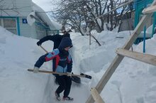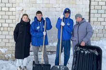 Обучающиеся филиала колледжа помогли расчистить снег возле дома, где живет семья военнослужащего - участника СВО.