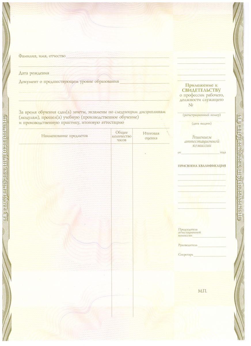 Форма документа выдаваемая по окончанию – Свидетельство о профессии рабочего, должности служащего установленного образца.