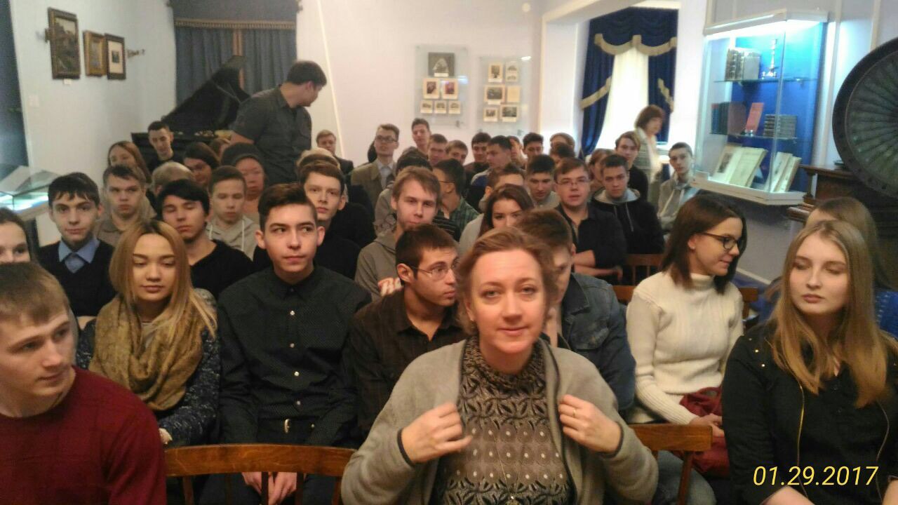 Опубликовано: 29.01.2017Студенты колледжа посетили ТЮЗ в день рождения А.П. Чехова- сцены юмористических рассказов. Группы 16 Т1, 16Т2, 16Т3,16Д .