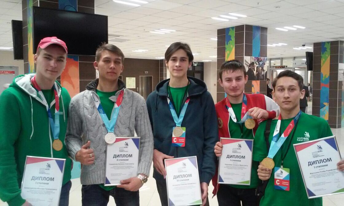 Компетенция "Производственная сборка изделий авиационной техники" 1 место- Муртазин Раиф, 2 место - Сурадеев Максим, 3 место- Мамышев Фарид.
