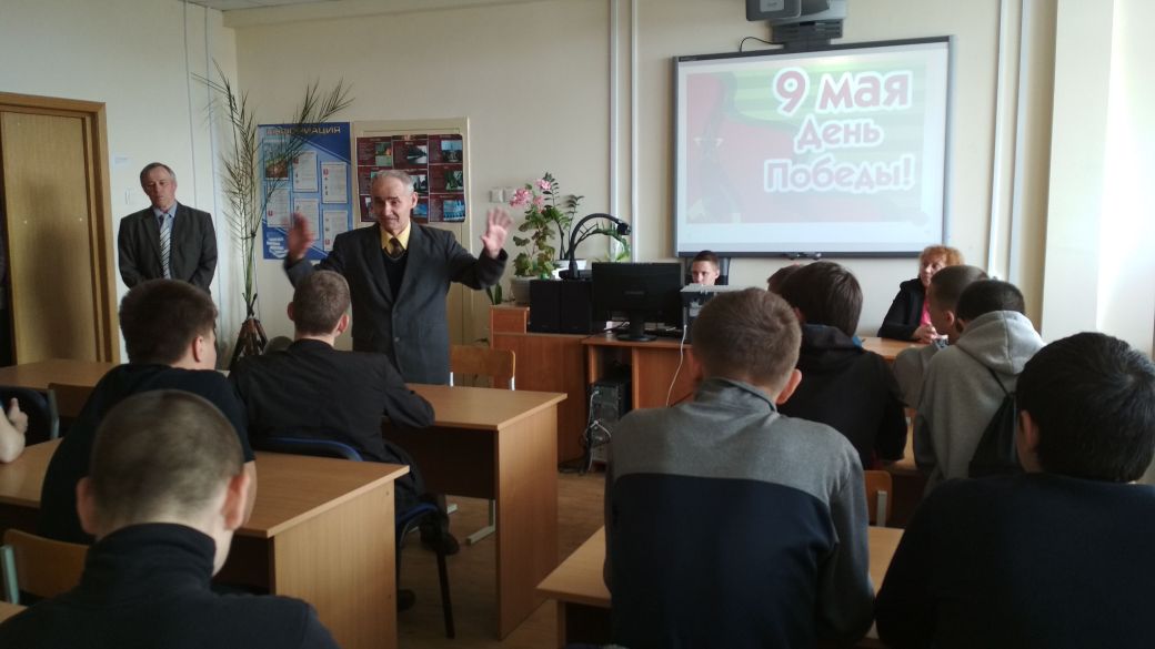 Опубликовано: 07.05.2018В рамках празднования 73 годовщины Победы в Великой Отечественной войне во всех зданиях колледжа проходят торжественные мероприятия. В здании 2 прошла встреча с ветераном Барановым Николаем Демьяновичем. Он рассказал ребятам, как он, ребенком, находился и жил на оккупированной территории.