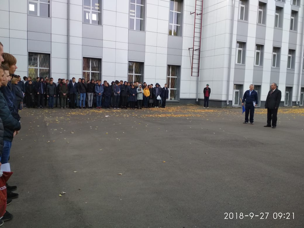 В учебных зданиях №1, 2 прошла учебная тренировка по ГО и ЧС. Сигнал о начале тренировки был получен в 11.00 часов. Соблюдая меры безопасности весь коллектив студентов и преподавателей покинул здания. Сбор коллектива на площадках у здания показал, что действия по эвакуации были выполнены правильно.