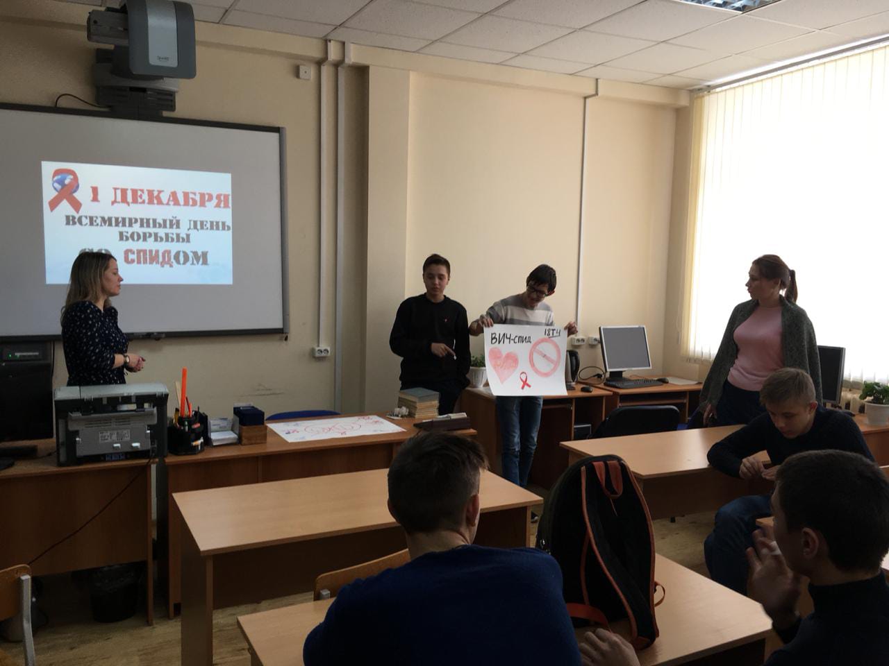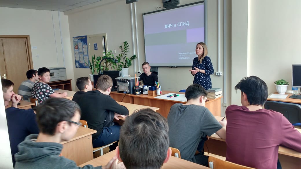 Опубликовано: 05.12.2018Волонтерами колледжа было подготовлено и проведено мероприятие направленное на профилактику ВИЧ/СПИДа. Активным участником стал Егоров Д. группа 18Т4, подготовивший лекцию на тему «Все, что нужно знать о ВИЧ».
