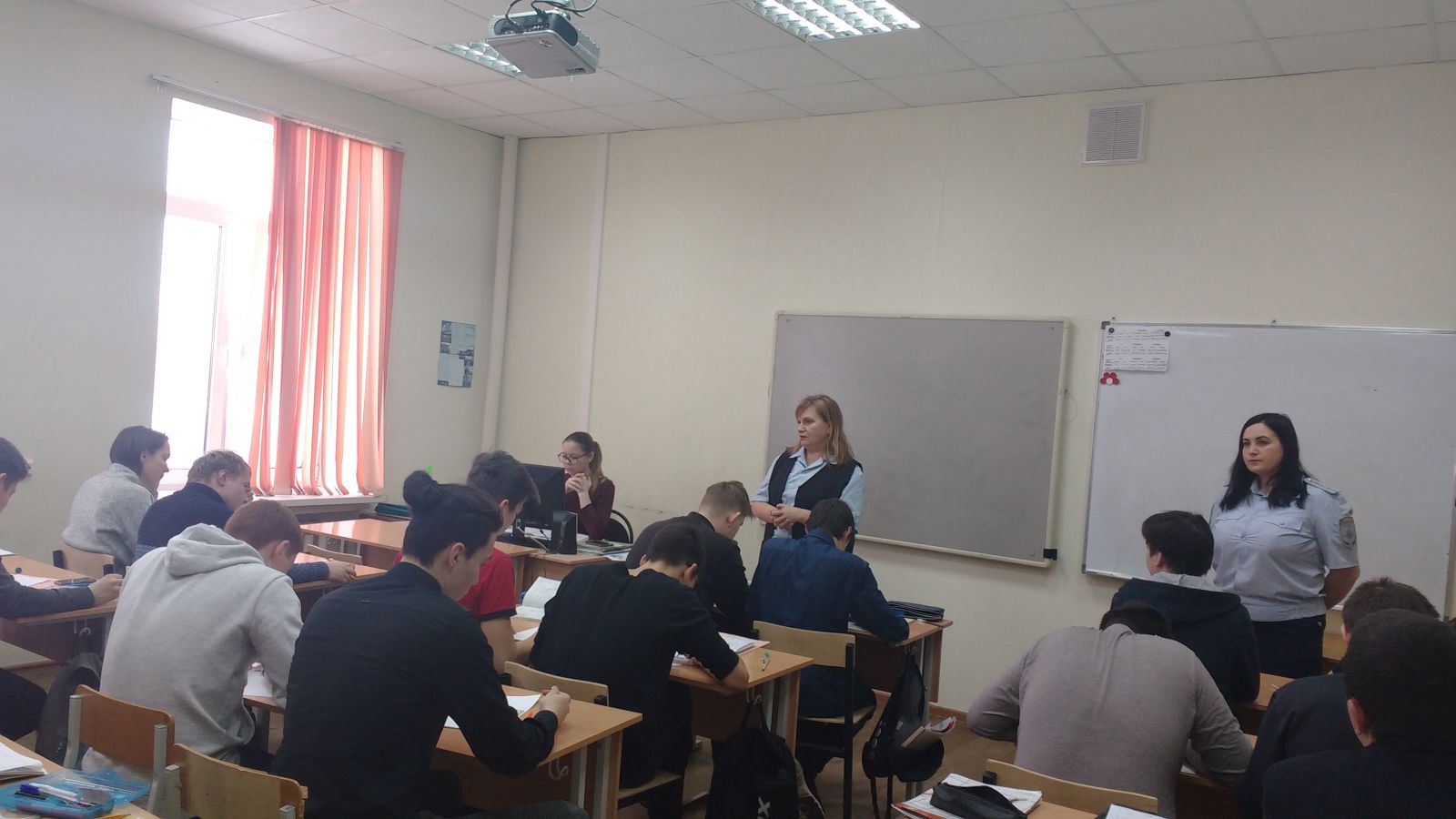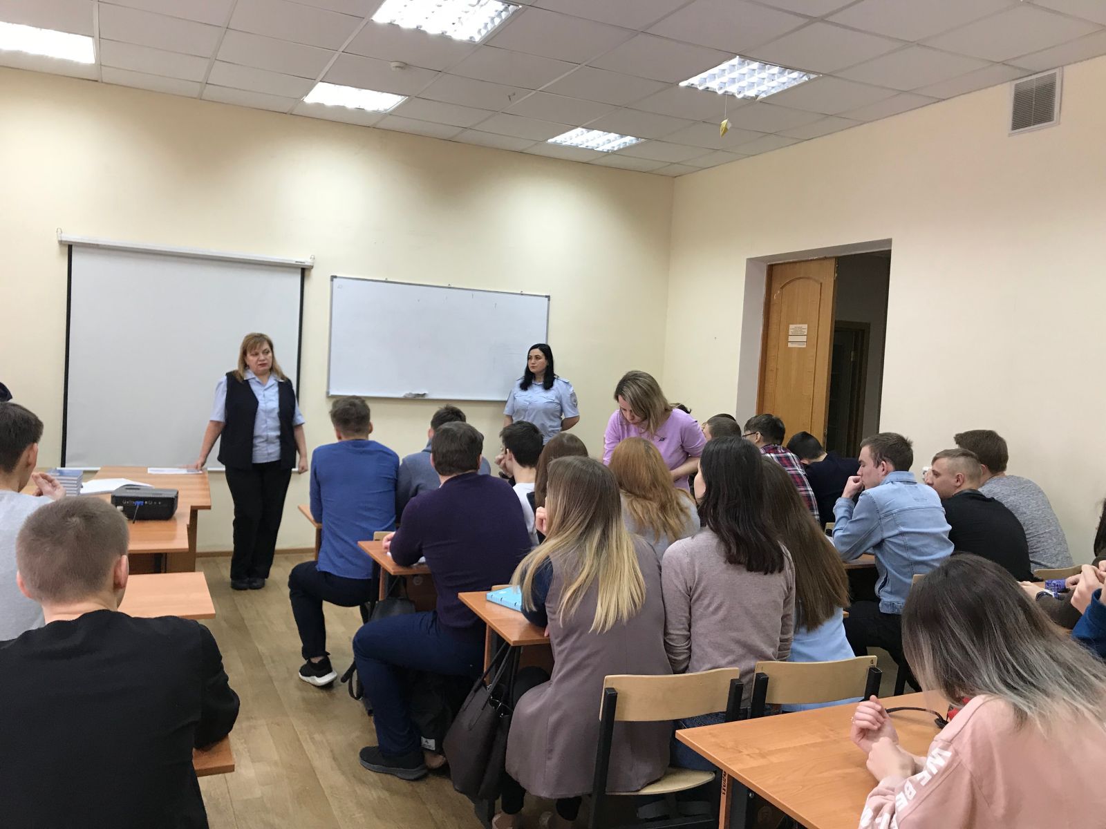 Опубликовано: 07.02.2019В колледже 7 февраля 2019г. прошла беседа на тему: «Профилактика правонарушений» с участием представителей правоохранительных органов.