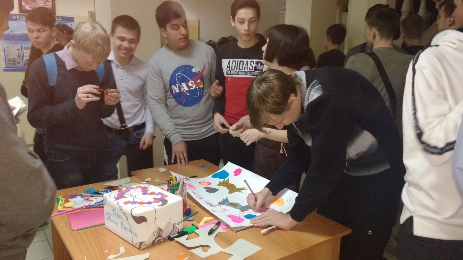Мастер-класс по изготовлению открыток-валентинок: каждый желающий мог сделать красочную валентинку и подарить своей половинке; также можно было поучаствовать в создании газеты посвященной этой теме.