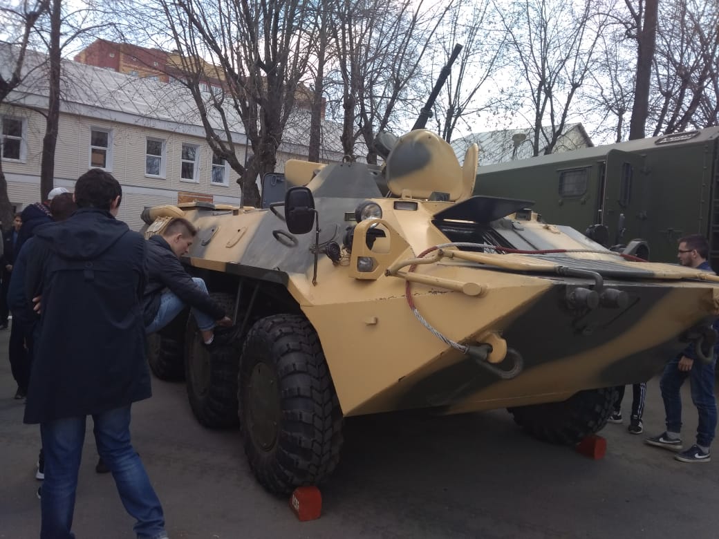 Опубликовано: 25.04.2019В рамках Дня призывника студенты групп 1702 и 1744 посетили воинскую часть г.Казани. Они ознакомились с распорядком дня солдат, военной техникой и оружием. Кинологи продемонстрировали мероприятия по задержанию опасного преступника, а так же обнаружение взрывчатого вещества.