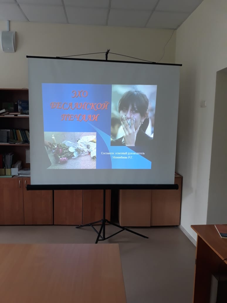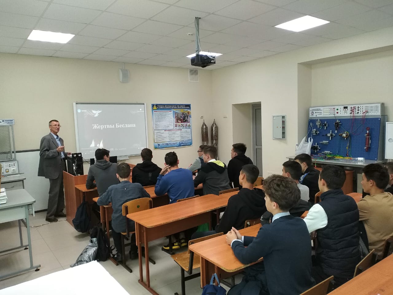 С докладом выступил Нигматзянов Ильсур, студент колледжа. Классный час проведен в форме дискуссии, в социальных сетях в режиме онлайн в прямой трансляции были организованы выражения поддержки и соболезнования жертвам теракта в Беслане, в группе проведена минута молчания.