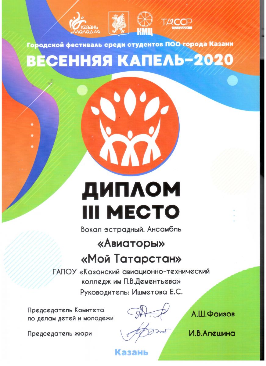 Наша творческая команда колледжа заняла 3 место в общем зачете среди студентов образовательных учреждений СПО г.Казани!