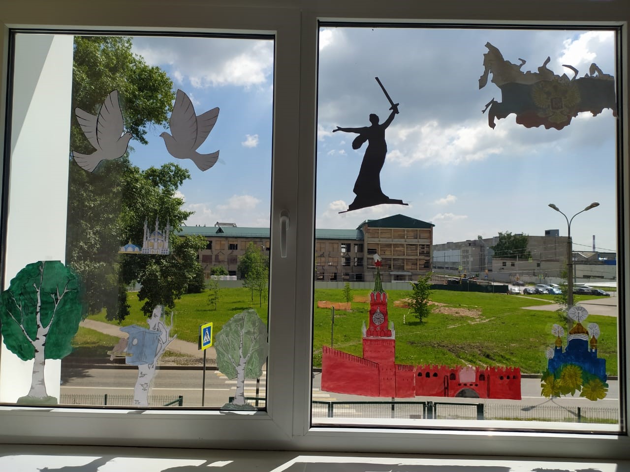 1. Украсить свои окна рисунками, картинками, надписями, посвященными России, своей малой Родине (городу, поселку, деревне), семье с помощью красок, наклеек, трафаретов, чтобы украшенное окно было видно с улицы.