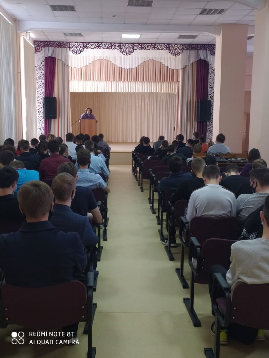 Опубликовано: 19.04.2021В рамках профилактики заболеваемости и формирования здорового образа жизни продолжается ряд встреч с заведующей отделением в Республиканском клиническом противотуберкулезном диспансере Тепловой Т.П. Профилактическая беседа проведена для студентов 1,3 курсов.