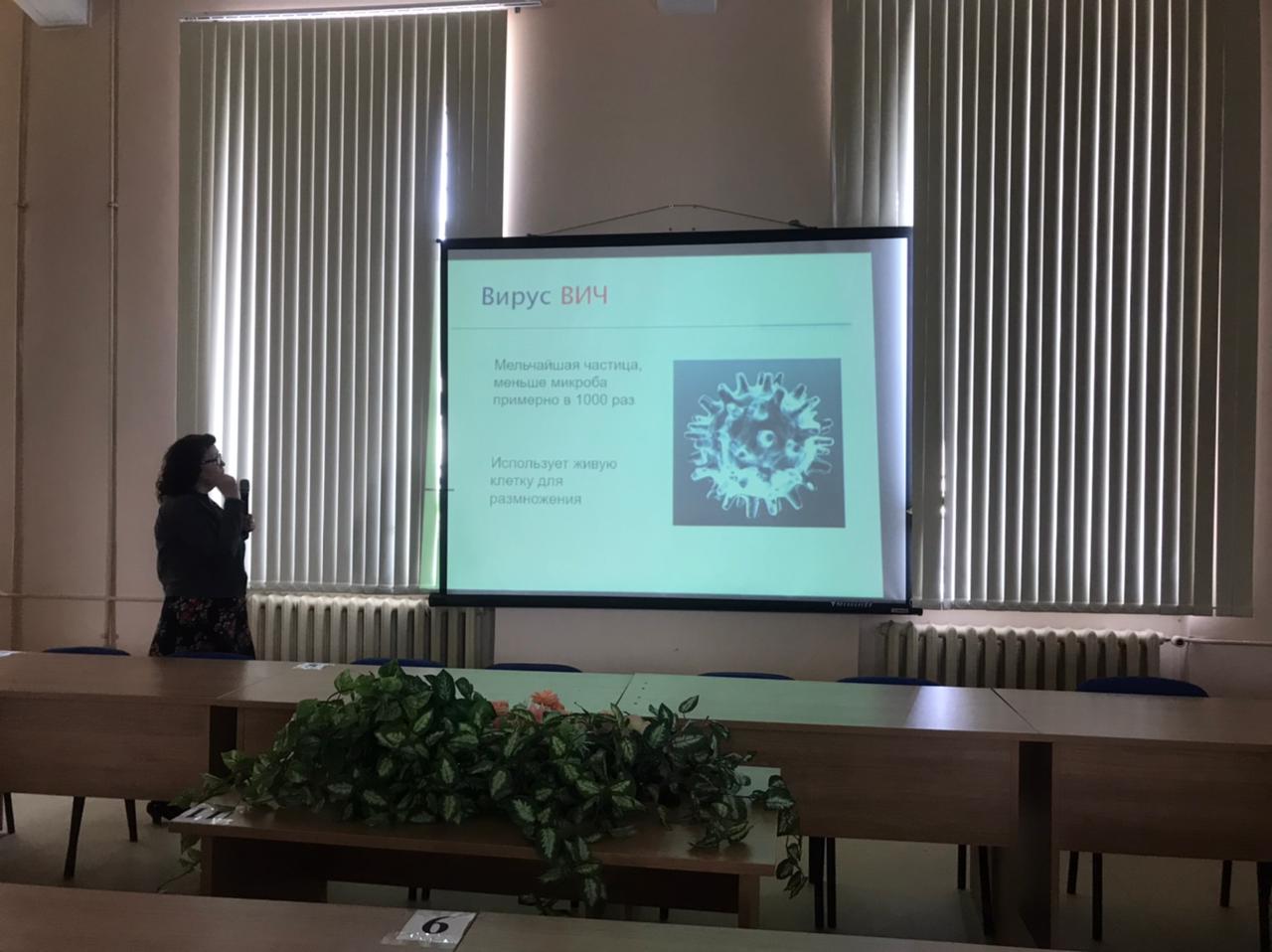 Опубликовано: 11.05.2021В рамках профилактики заболеваний и здорового образа жизни11 мая 2021г. в колледже прошла встреча с представителями Центра СПИД. Врач-психотерапевт Мухаметова Роза Нургалеевна, провела профилактическую беседу на тему: «Профилактика ВИЧ-инфекции» для студентов 1,2 курсов. Охват составил 100 человек.
