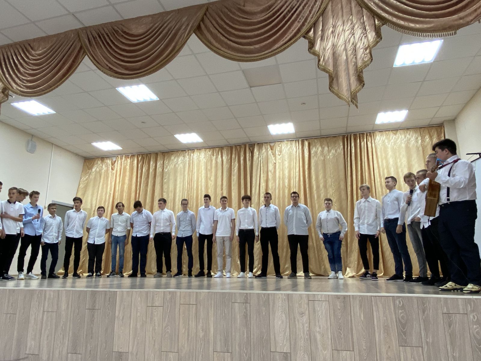 Праздник начался с зажигательных танцев и задорных песен, студенты 1 курса подготовили творческие номера и презентации от своих групп. Прозвучали напутствия первокурсникам от заместителя директора Шамсутдинова Р. Р., заведующей Алманкиной А. А., Сафиной Ч.Х. С пожеланиями интересной студенческой жизни, успешной учебы и, конечно, здоровья выступил заместитель управляющего директора, руководитель аппарата АО "Казанский вертолетный завод" Шагимарданов Адель Дамирович.
