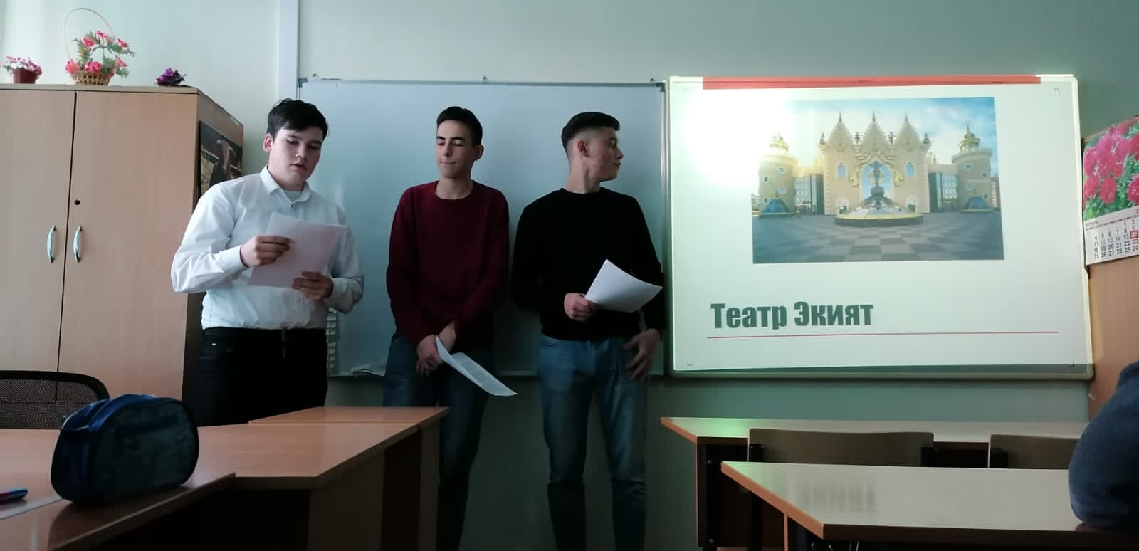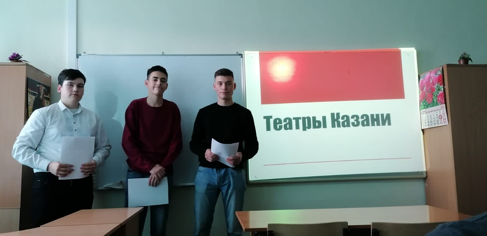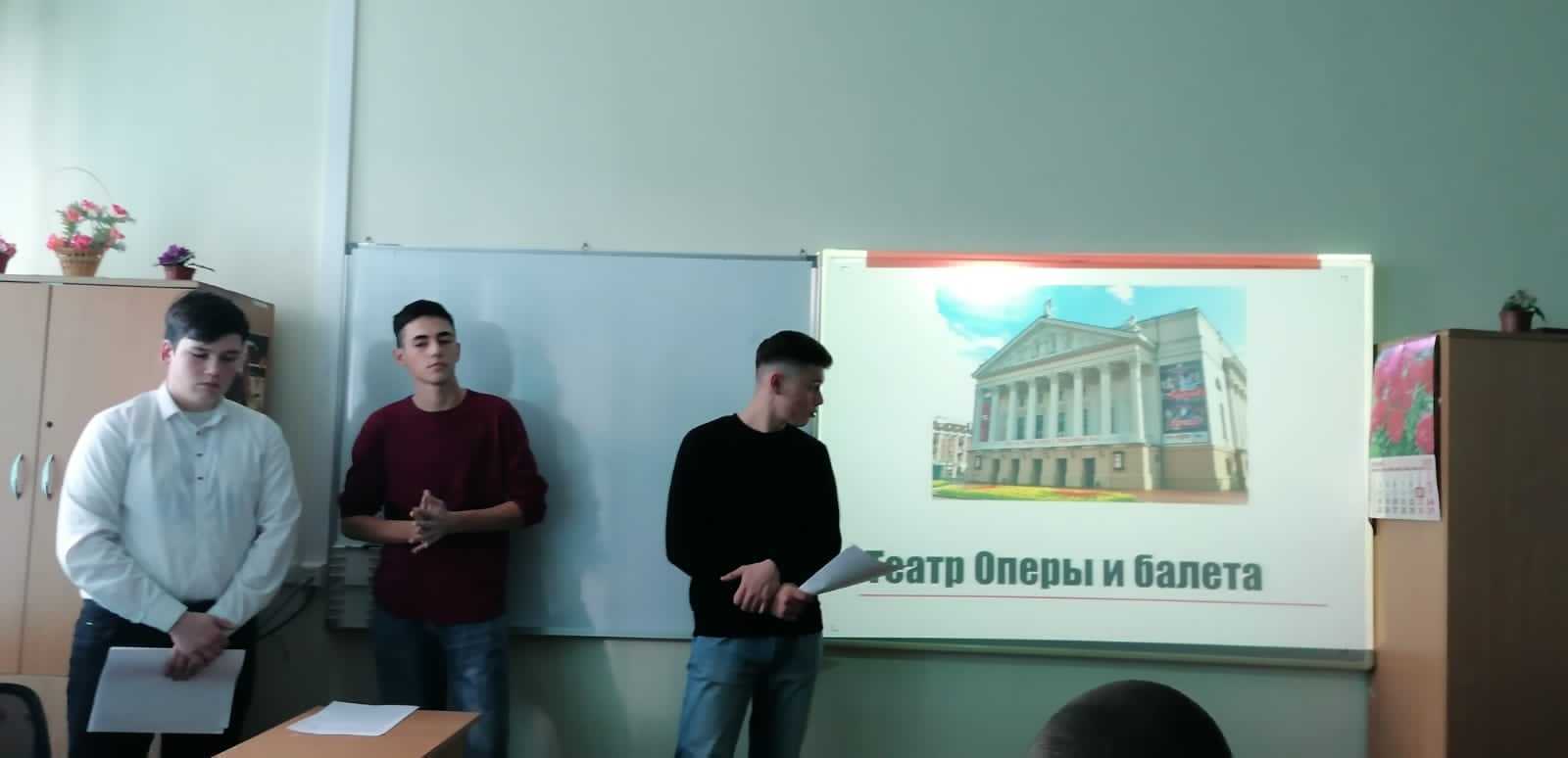 Опубликовано: 19.10.202119 октября в группе 20Т2 был проведён классный час на тему: "Театры города Казани". Выступали студенты: Бабутаев А.Р., Галявиев Р.Р., Сайфуллин Р.Е. Ребята подготовили доклад с презентацией, а также более подробно ознакомились с театрами "Экият"," Юного зрителя" , Театр оперы и балета им. М.Джалиля.