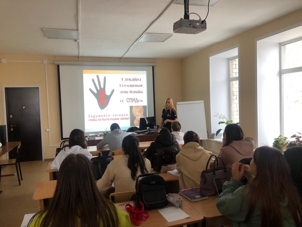 Опубликовано: 01.12.2021В рамках муниципального конкурса «Лидер года – 2021» среди лидеров школьных и студенческих формирований «Форпост» и отрядов профилактики правонарушений студентка 1 курса гр. 21э Самотохина Валерия провела классный час в рамках Дня борьбы со СПИДом.