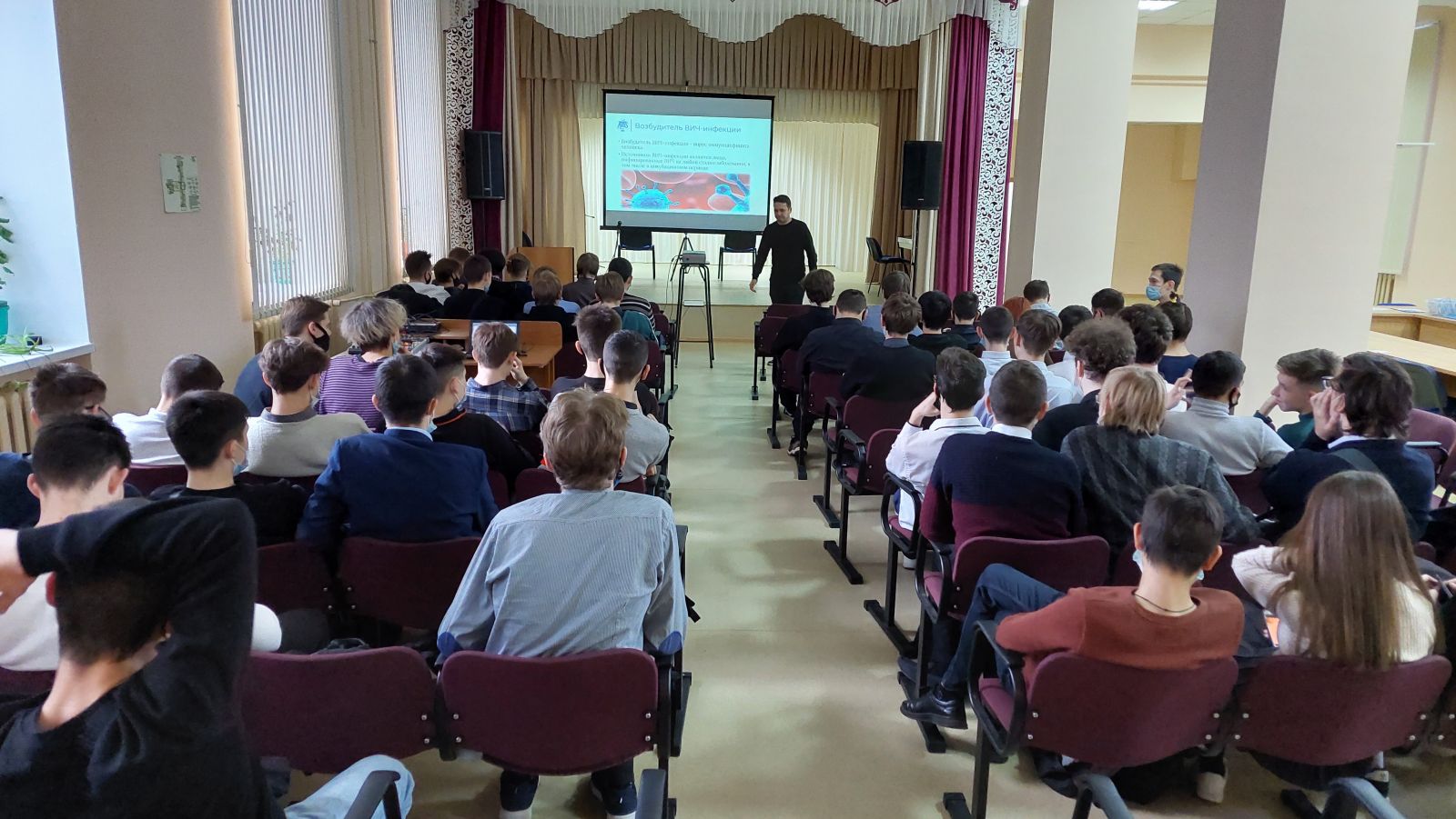 Опубликовано: 02.12.20212 декабря в рамках Всероссийской акции «Стоп ВИЧ/СПИД» врачи – эпидемиологи ГАУЗ «РЦПБ СПИД и ИЗ МЗ РТ» провели лекцию для студентов о проблеме ВИЧ – инфекции, истории возникновения вируса, пути передачи. Во время встречи все желающие мероприятия могли бесплатно и анонимно пройти экспресс – тест на наличие ВИЧ - инфекции.