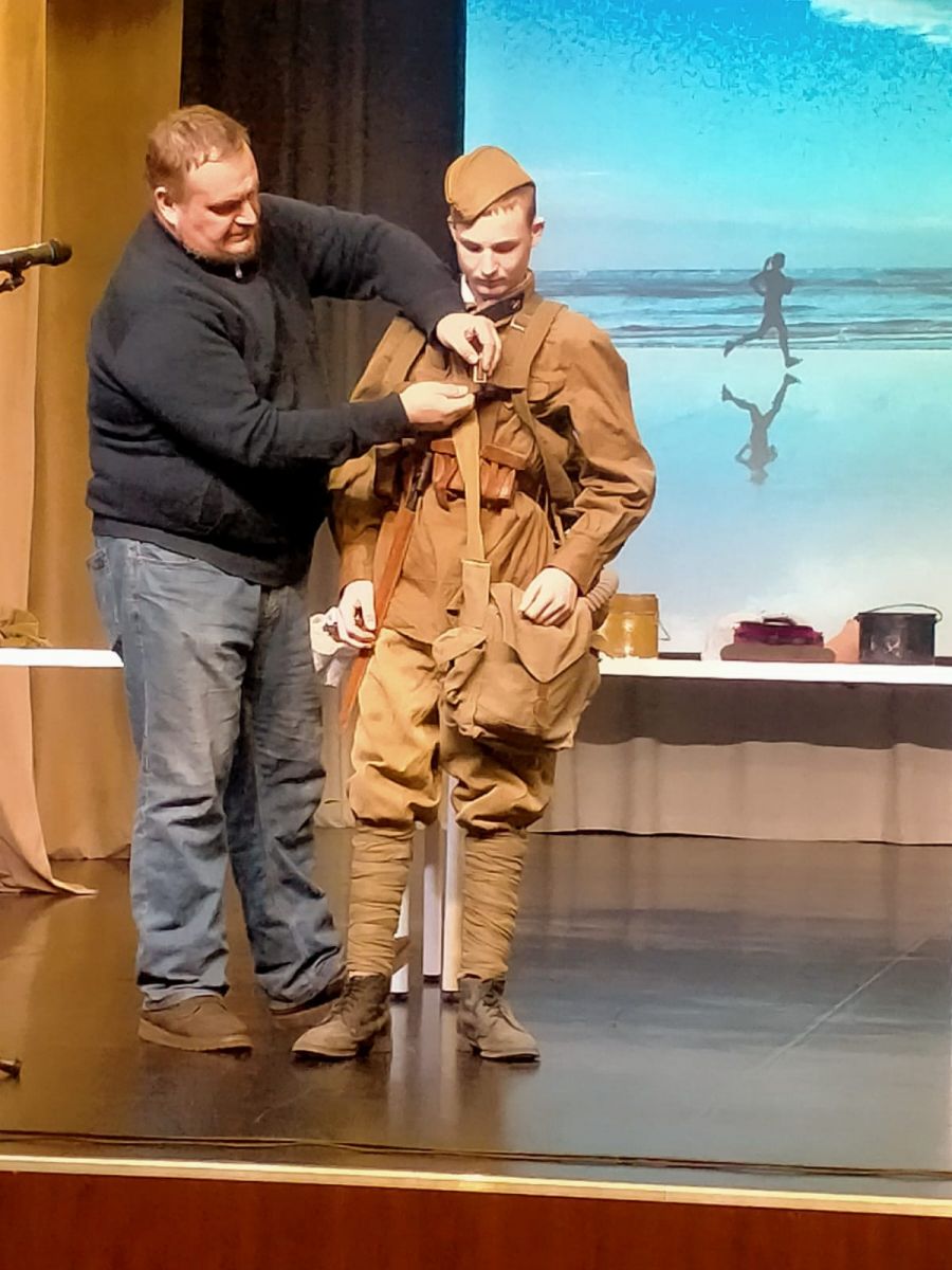 Опубликовано: 10.12.202110 декабря студенты филиала колледжа посетили выездной национальный музей. Для участников мероприятия был представлен показ мод татарского, русского, кряшенского костюмов из фонда краеведческого музея. Национальный музей, в лице Хаббарова Владислава Вениаминовича – заведующий отделом научной реконструкции Национального музея, представил выставку «Что носили, чем сражались», на которой познакомил участников с организацией, вооружением и повседневной жизни армии во времена ВОВ.