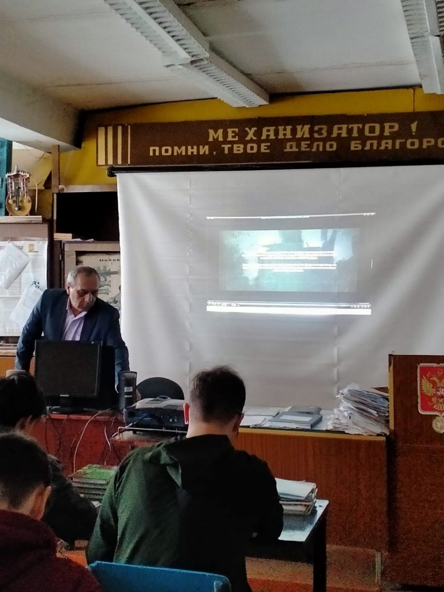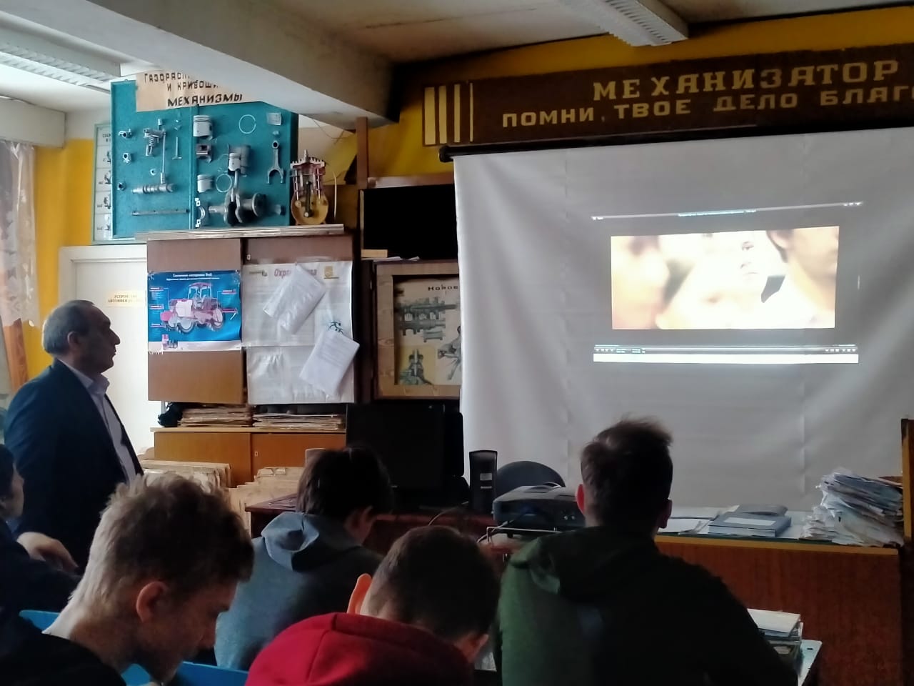 Цель - привлечение молодежи к истории военного времени, формирование художественного и эстетического вкуса учащихся, развитие творческого потенциала; передать молодежи те патриотические ценности, которые заложены в фильмах прошлых лет; показать студентам великий подвиг и героизм советского народа во время Великой Отечественной войны. Организовал мероприятие - Сулейманов Р.А., кл.руководитель.