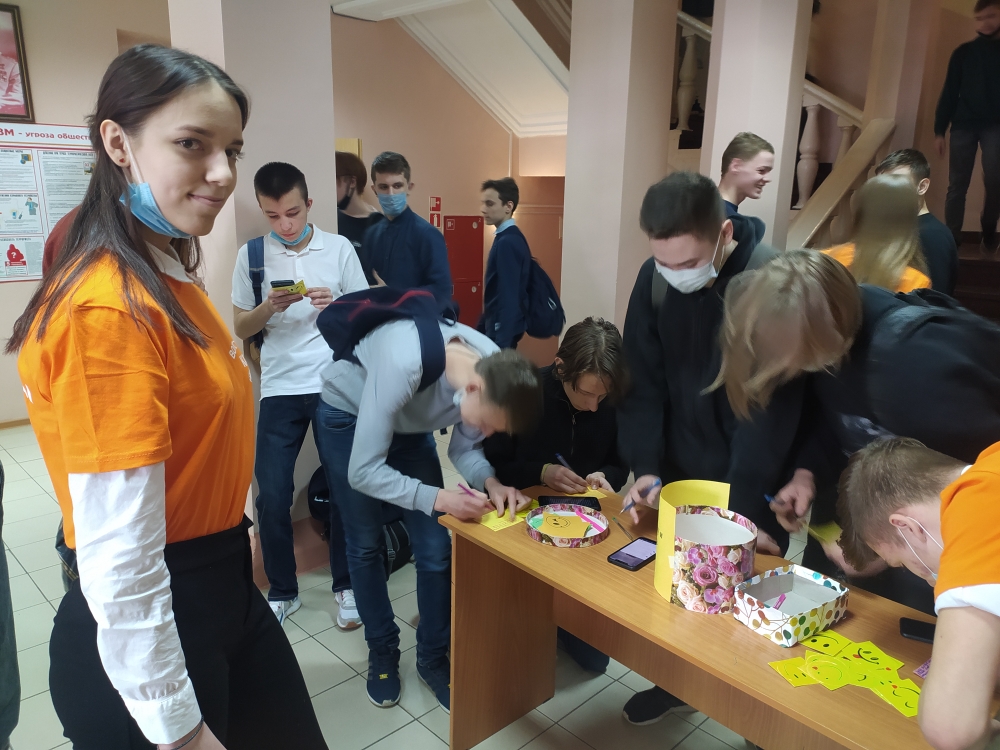 и уместности шутки и смеха. Волонтёры дарили студентам смайлики, смешные открытки и провели конкурс на лучшую шутку. Акция подарила позитивные эмоции, улыбки, а музыка поднимала настроение нашим преподавателям и студентам. Ребята написали интересные шутки, победителем конкурса стал Кириллов Н. группа 2001, организаторы конкурса выделили дополнительные номинации. Филипов Ярослав группа 21Т2, Марданшин Камиль 21Д получили грамоты за остроумие и жизнерадостный настрой.