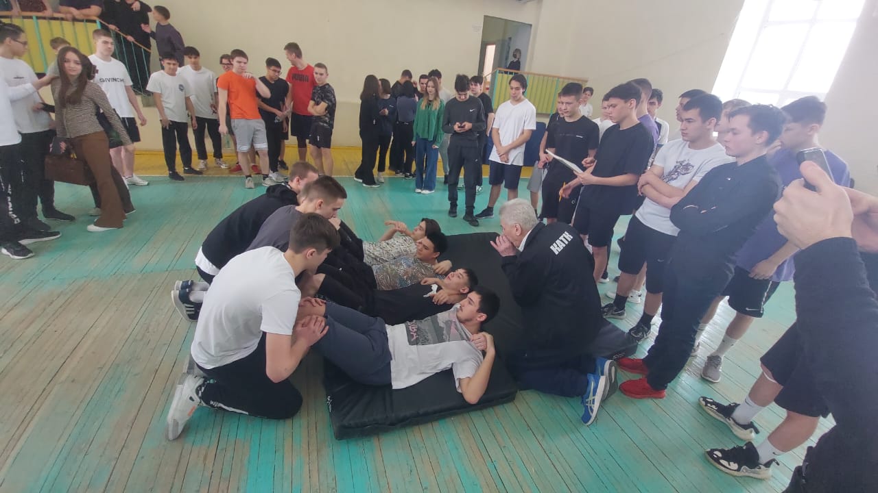 Преподаватель физ. воспитания и ОБЖ Насыртдинов Р. Ф., Чигвинцев Е. И. организовали соревнования на поднятия туловища на время, перетягивание каната, сборку разборку автомата, и волейбол. Как всегда было шумно, и интересно.