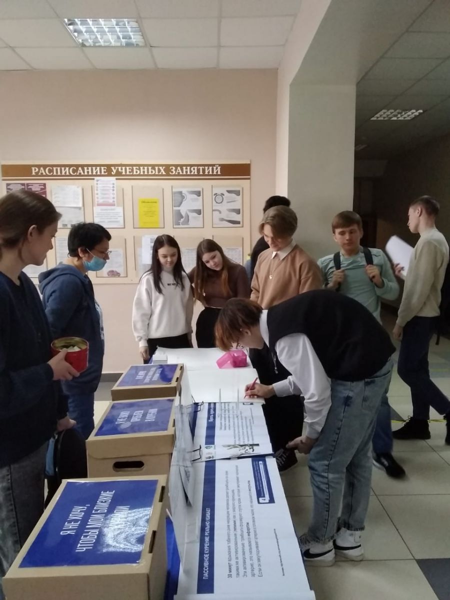 Опубликовано: 21.03.2023Ежегодно в нашем колледже проводится Акция «Один день». Мероприятие проводится совместно со специалистами Центра «Доверие» направлено на пропаганду здорового образа жизни и профилактику табакокурения с целью привлечь внимание студентов, родителей к проблеме курения и повысить стремление учащихся жить без вредной привычки, стремление к психическому, нравственному и физическому совершенству.