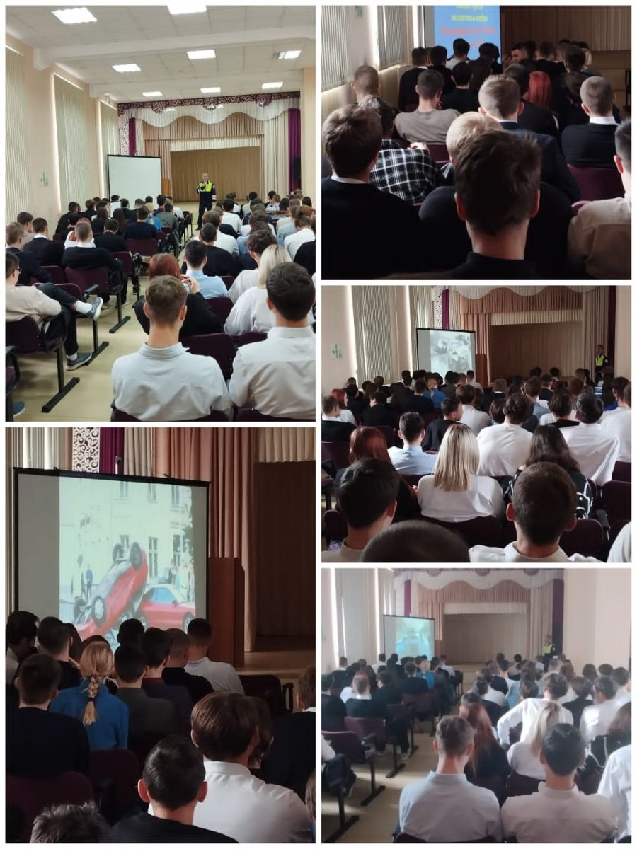 В рамках лекции была приведена статистика аварий, нарушений и изменения в правилах дорожного движения. Также, организован просмотр видеороликов о ДТП и их последствиях, направленных на сохранение жизни и здоровья участников дорожного движения. В мероприятии принимали участие 1,2 курсы.