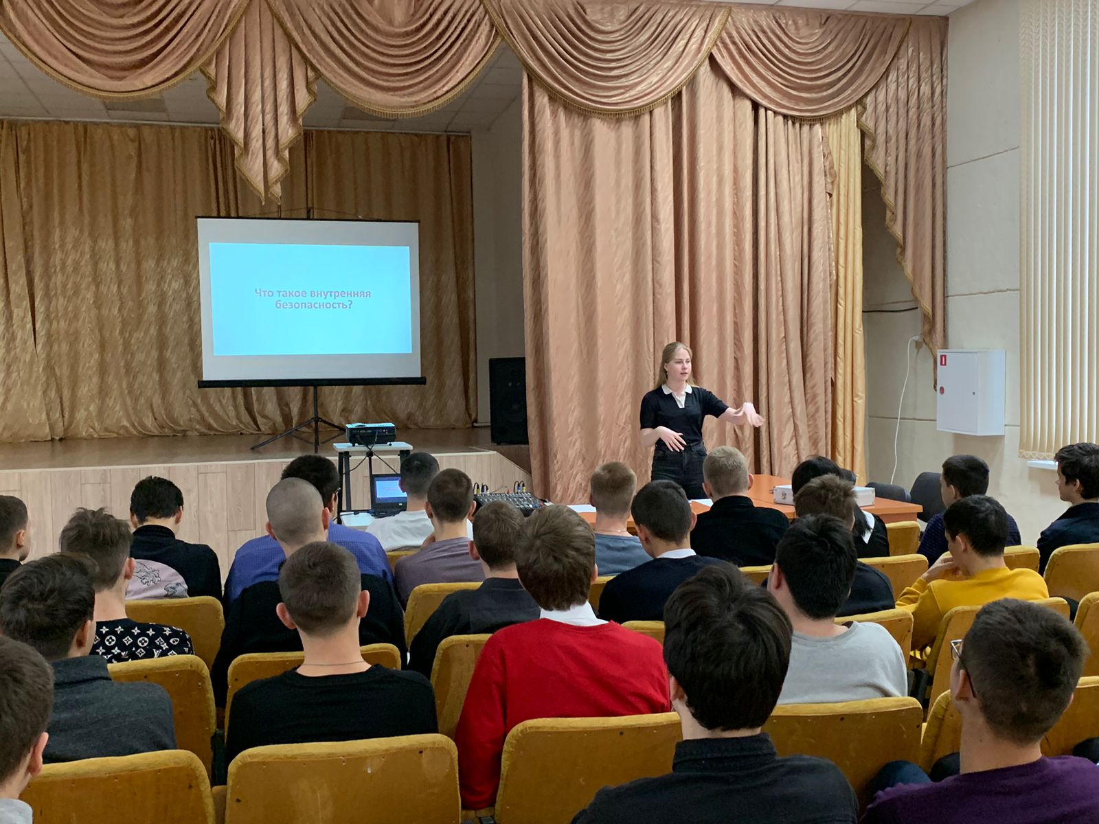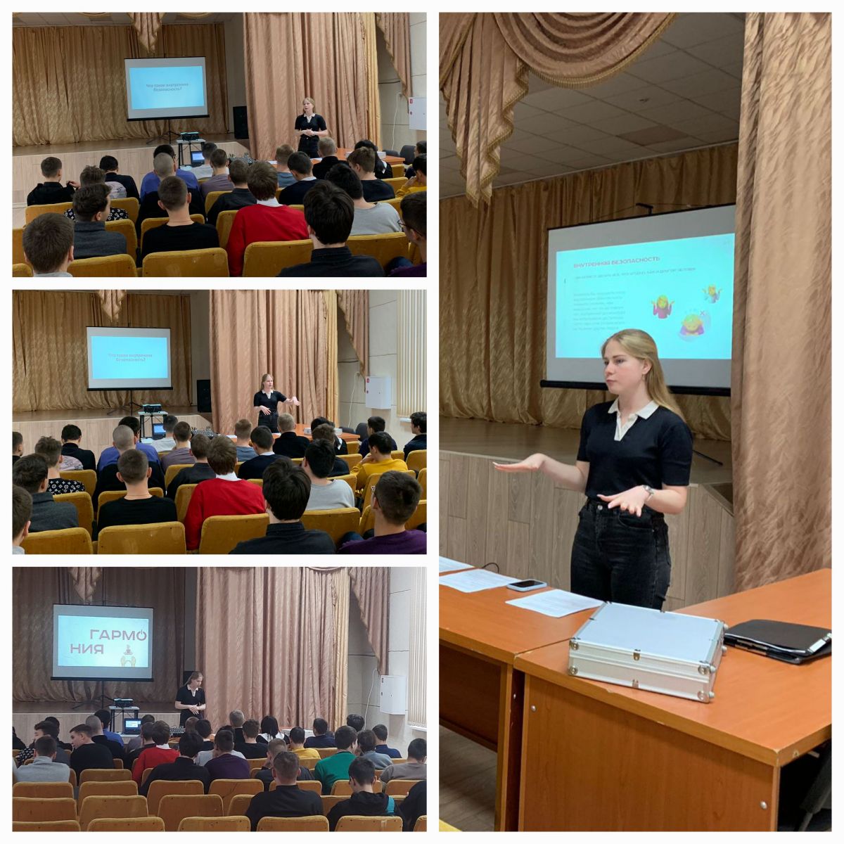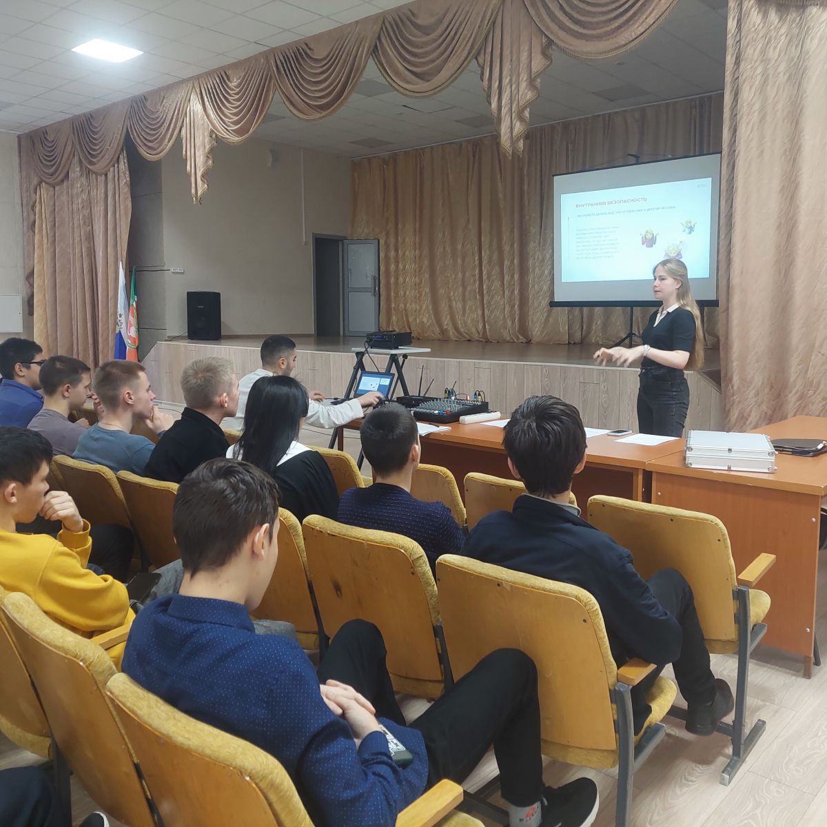 Опубликовано: 20.11.202317 ноября совместно со специалистом - помощником руководителя Антитеррористической комиссии в Республике Татарстан Соколовой К.Ю. проведено занятие на тему «Гармония в тебе», направленное на формирование навыков развития способности справляться с жизненными сложностями, навыкам выстраивания устойчивых дружеских взаимоотношений. Студенты вместе со спикером разобрали тематику «Гармония». В ходе лекции был рассмотрен феномен конкордии, а также разобрали, почему человек по своей природе стремится к спокойствию.