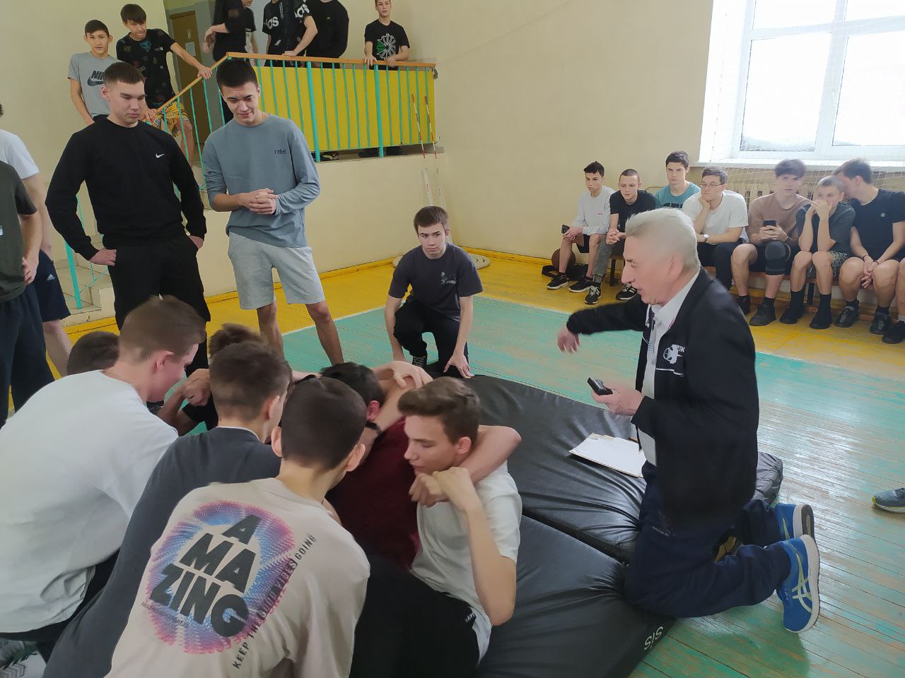 В рамках спортивного праздника студенты организовали волейбольный турнир, в котором приняли участие сборные 2 курса и, конечно, студенты 1 курса колледжа.