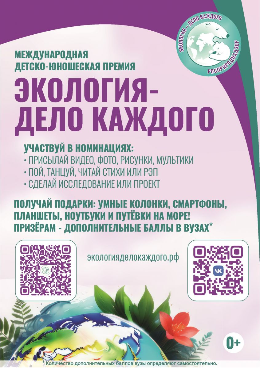 IV Международная детско-юношеская премия «Экология – дело каждого» проводиться с целью популяризации темы экологии, бережного отношения к природе и окружающей среде.