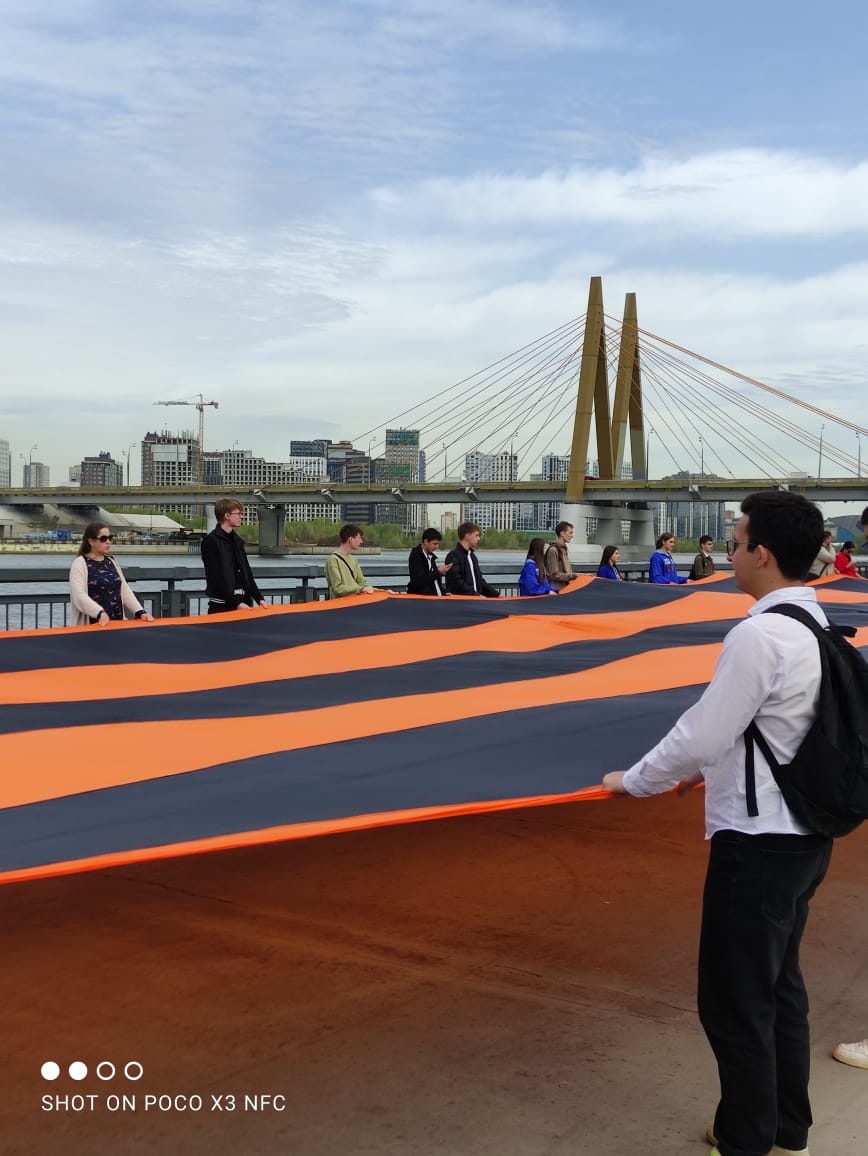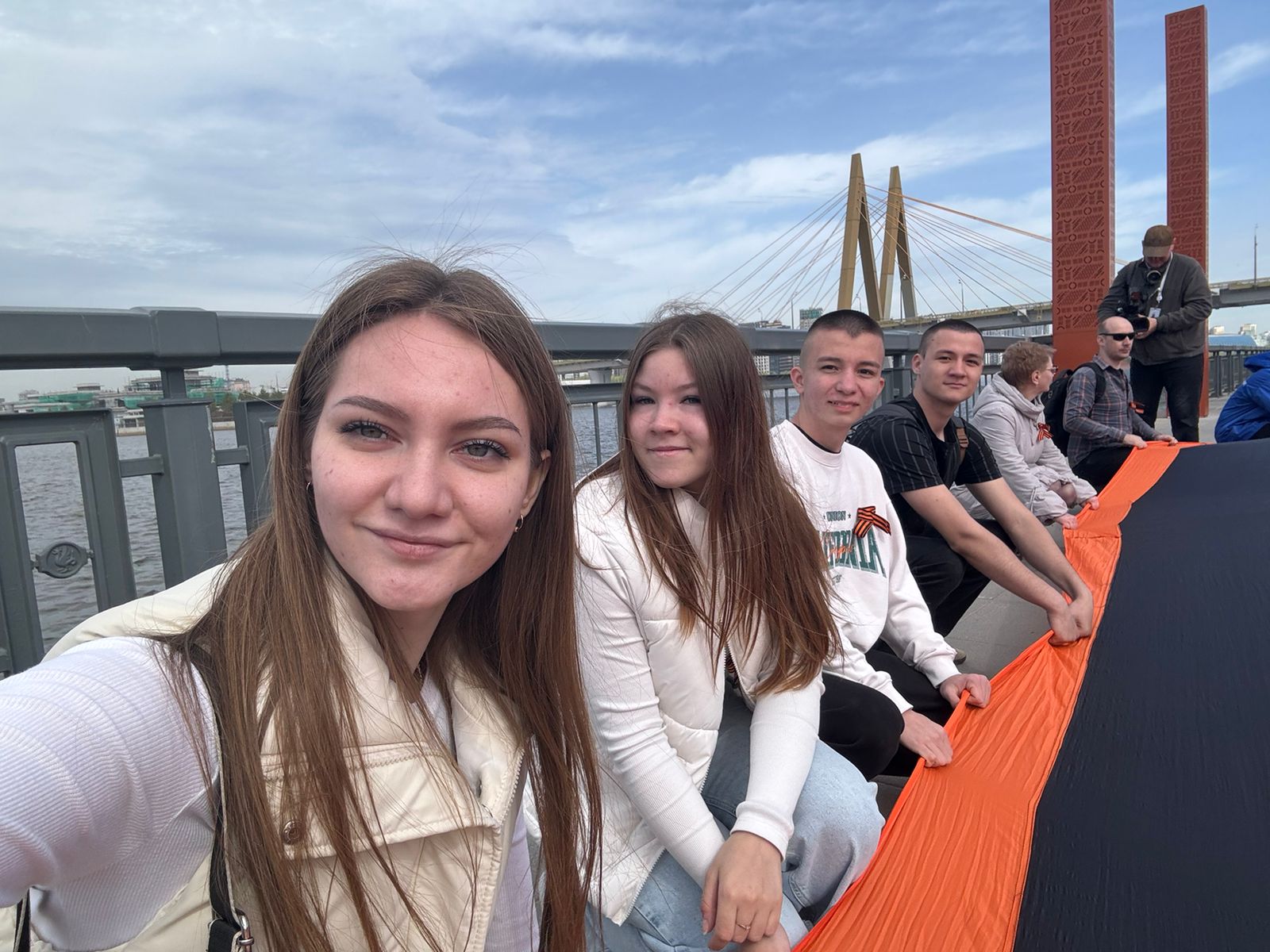 Опубликовано: 25.04.202425 апреля наши студенты-волонтеры добровольческого отряда “Крылья” приняли участие в акции и развернули самую большую в России Георгиевскую ленту, длина которой составляет 300 метров. Ленту раскрыли и колонной пронесли по набережной реки Казанка.