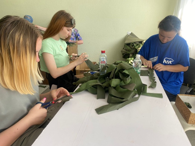 Опубликовано: 18.06.2024Студенты филиала колледжа присоединились к изготовлению маскировочных сетей для фронта совместно с серебряными волонтёрами.
