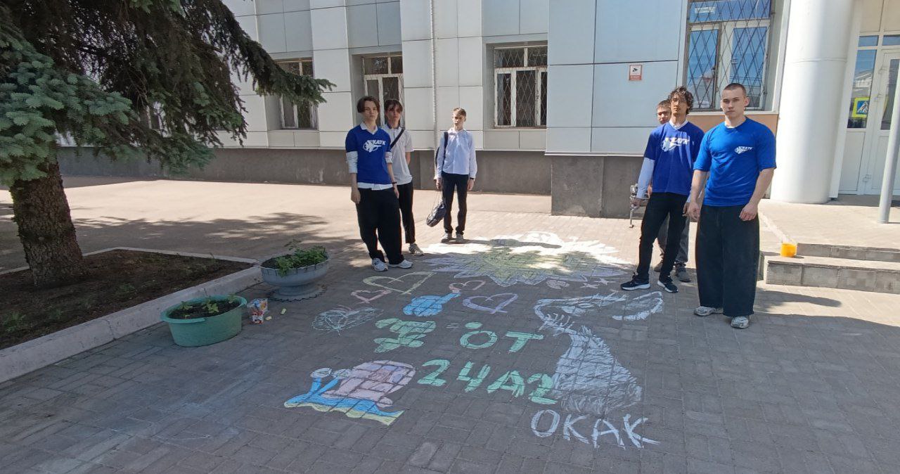 Опубликовано: 03.06.2025Ко Дню защиты детей организована акция "Рисую мелом". Студенты нарисовали персонажей мультфильмов смешариков, самолет, солнце…