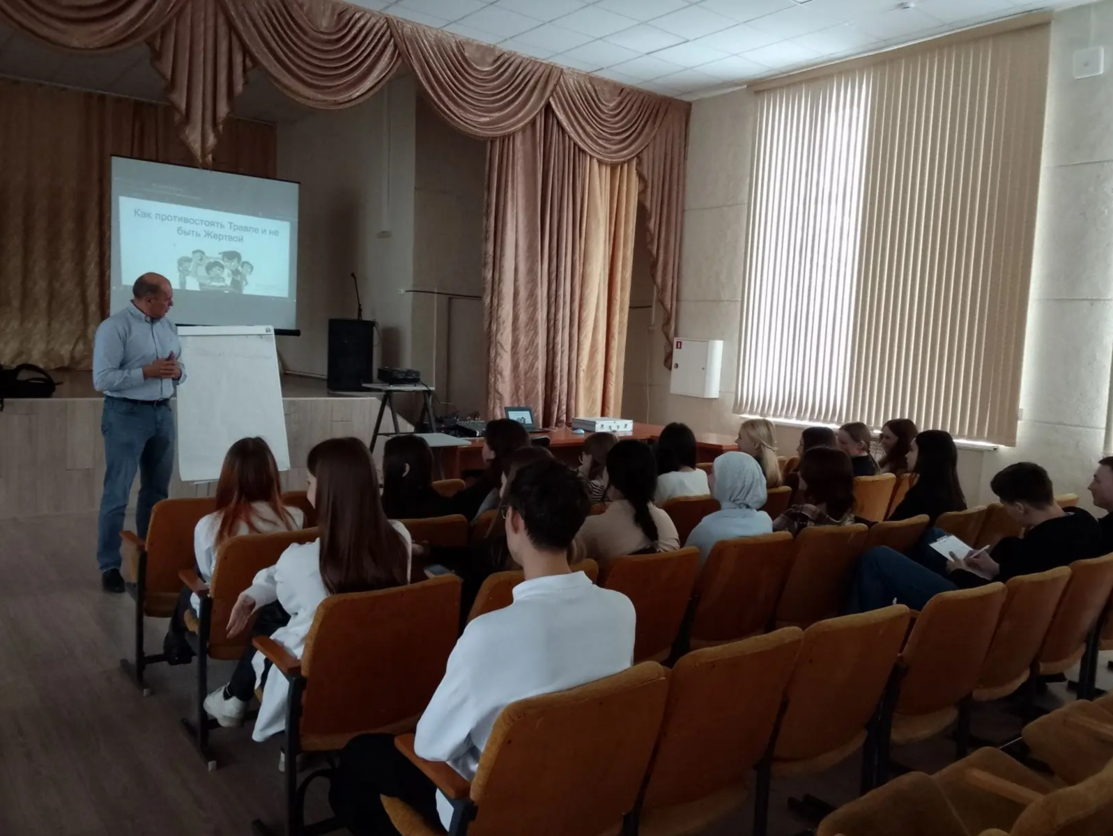 Опубликовано: 30.03.2026Сегодня в колледже прошли интерактивные беседы для студентов 1 курсов организованные совместно с АНО "Центр Профилактики Преступлений "Родители за мир без преступности, насилия и наркотиков" на темы: «Закон в обществе» и «Как противостоять травле (буллингу)».