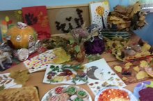 13.10 прошла осенная ярмарка. Активное участие приняли все классы. учащиеся сделали различные салаты из осенних овощей и фруктов., осенний букеты из цветов и листьев,аппликации и композиции. -