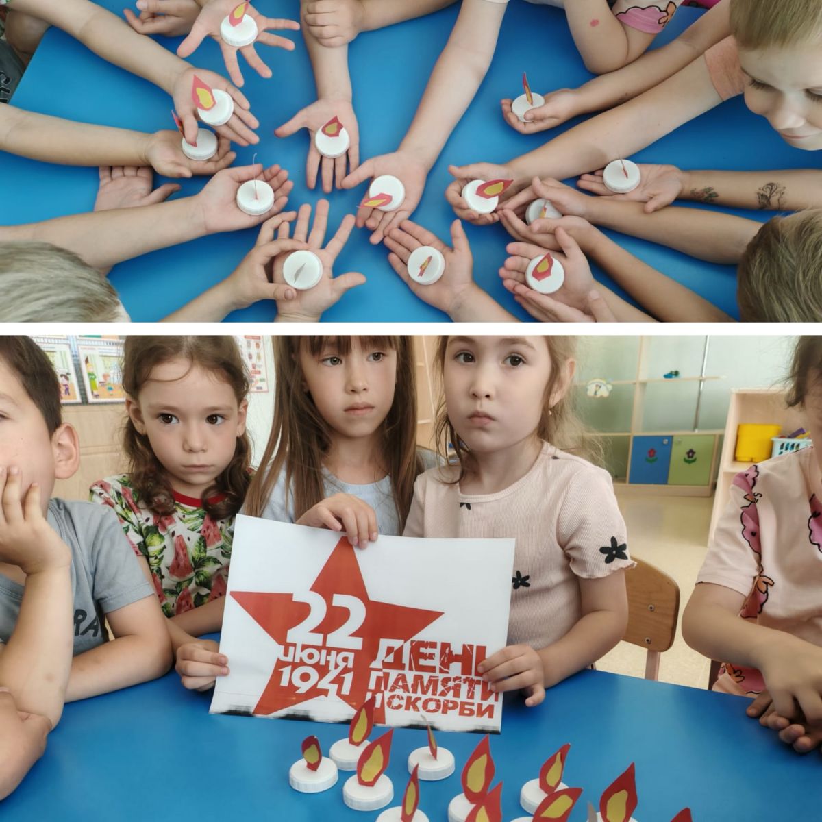 Воспитанники нашего детского сада приняли участие в патриотической акции «Свеча памяти». Во всех возрастных группах состоялись тематические занятия, направленные на воспитание уважения к подвигам героев Великой Отечественной войны.