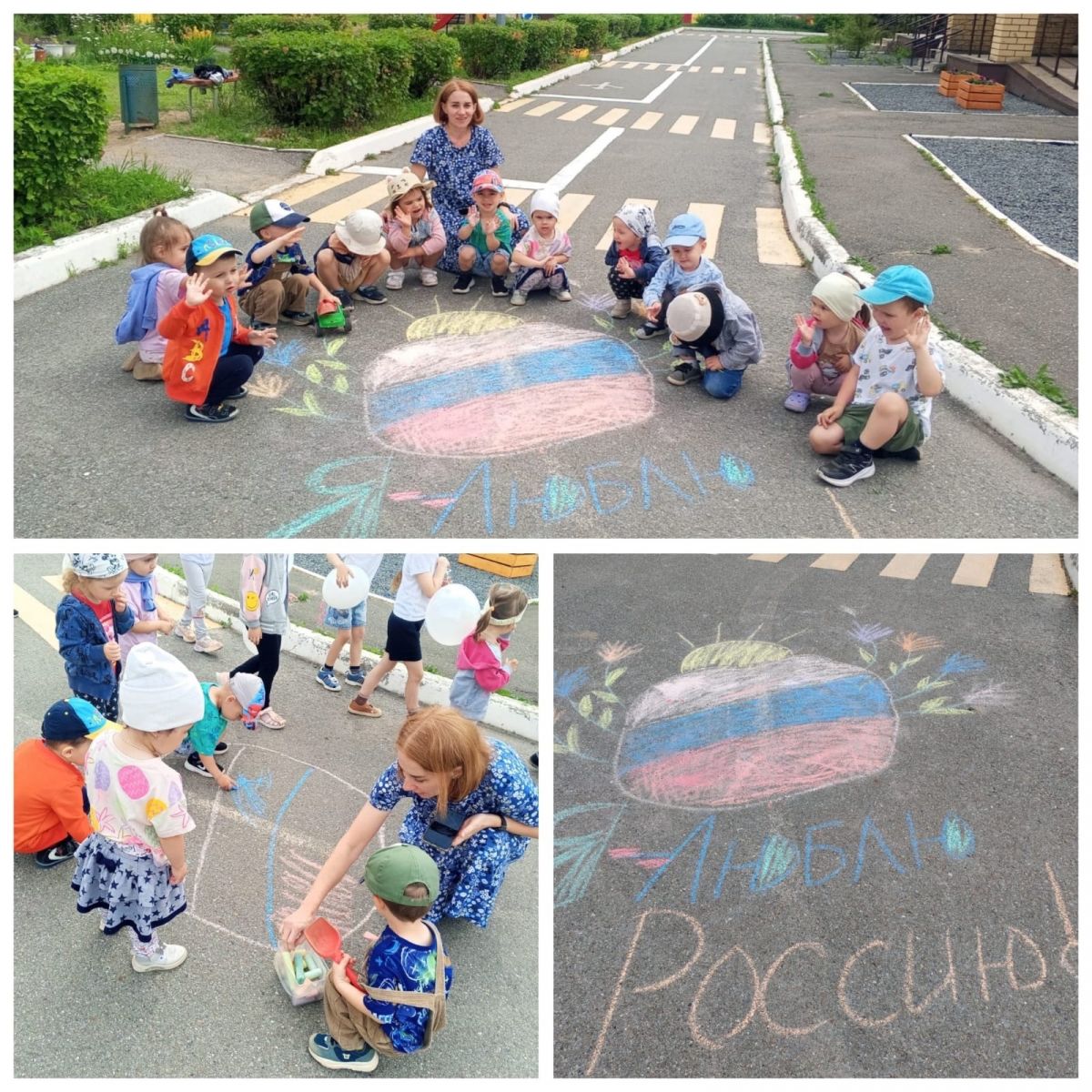 В честь праздника у нас прошел прекрасный флешмоб, объединивший всех участников искренним восторгом и дружбой. А завершение мероприятия — совместное рисование триколора на асфальте — стало ярким символом единства, творчества и любви к стране.