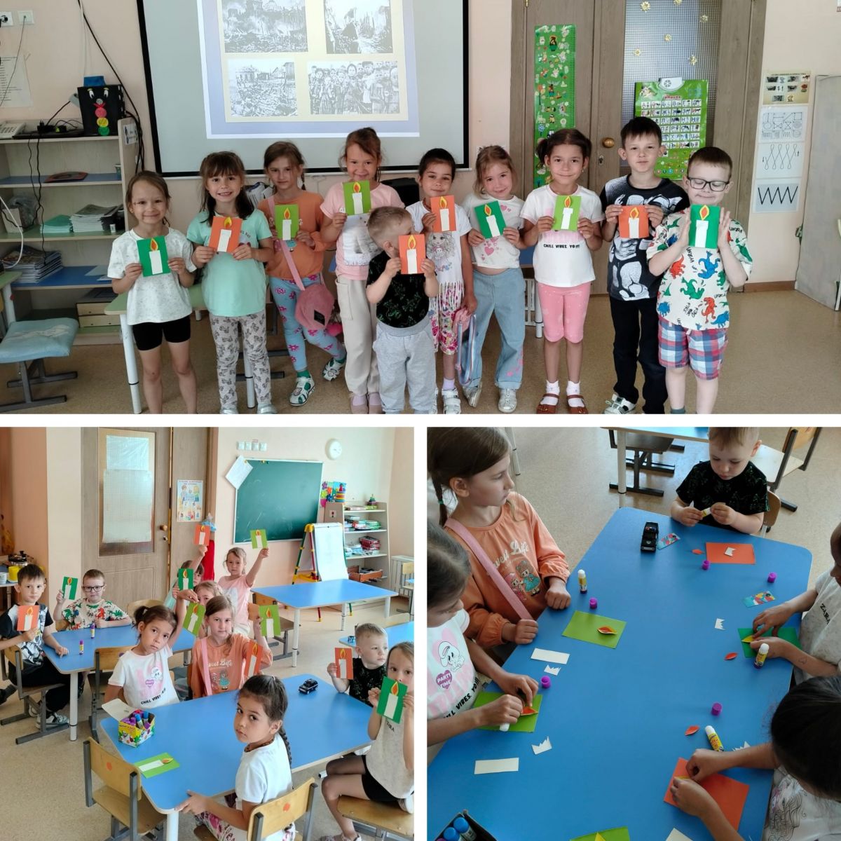 Ребята узнали историю праздника, слушали рассказы воспитателей о героизме солдат и мирных жителей. Каждый ребёнок зажёг символическую свечу, символизирующую память о погибших защитниках Родины.