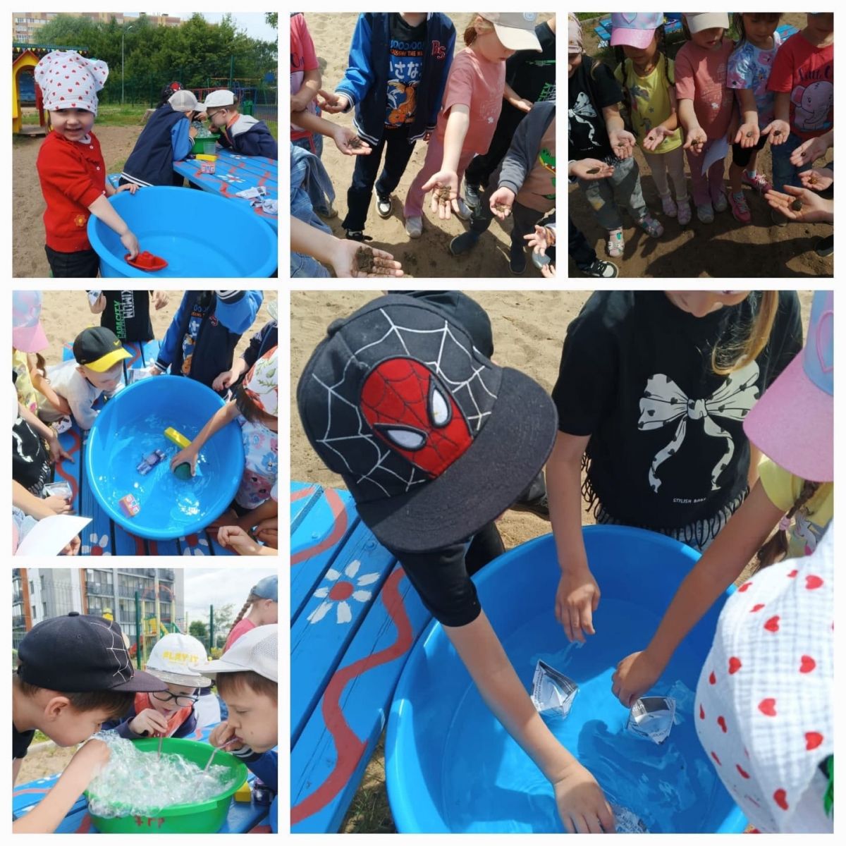 А ещё ребят ждали захватывающие эксперименты с водой, благодаря которым они смогли познакомиться с удивительными свойствами жидкости.