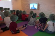 К нам приехал кукольный театр "Алина". Сказочные декорации и куклы, красивая веселая музыка и интересная сказка зачаровала наших детей. Ребята с интересом следили за героями сказки, вместе с ними веселились, пели и помогали главным героям.
