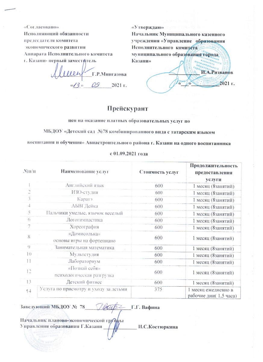Прейскурант цен на оказания платных образовательных услуг с 01.09.2021 г.