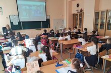 5-6 сыйныф укучылары алдында юл хәрәкәте иминлеге дәүләт бюджет учреждениесенең профилактика бүлегенең әйдәп баручы белгече Газизова Айгөл Зөфәр кызы чыгыш ясады һәм "Велокультура" фильмын күрсәтте.