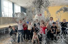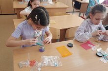 На занятии, приуроченном к Неделе инклюзивного образования, учащиеся 1 класса, делали картины из клякс.