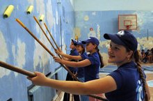 Учащиеся средней школы посостязались на знание основ гражданской обороны (надевание противогаза, сборка и разборка автомата, пользование огнетушителем и т.д.)