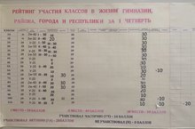 Ура! В нашей гимназии заработал рейтинг классов. Рейтинг разработан в соответствии с планов ВР на 2015-2016 уч.год. Ребята, родители и учителя соревнуются по разным направлениям: дежурство, питание в столовой, поведение, форма, участие в мероприятиях, родительский патруль, посещение родителями собраний, опоздания и много другое. А самое главное, что по итогам каждой четверти класс-победитель отправится в развлекательный комплекс ФАН 24.