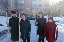 8а нче һәм 9а нчы сыйныф укучылары мәктәп территориясен кардан чистарттылар. Афәрин! Рәхмәт. -