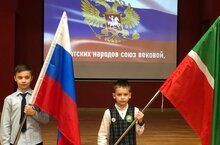 Право выноса флагов было предоставлено ученику 5А класса - Багаутдинову Искандеру и ученику 1А класса Гатиятуллину Алиму за достижения в учебе