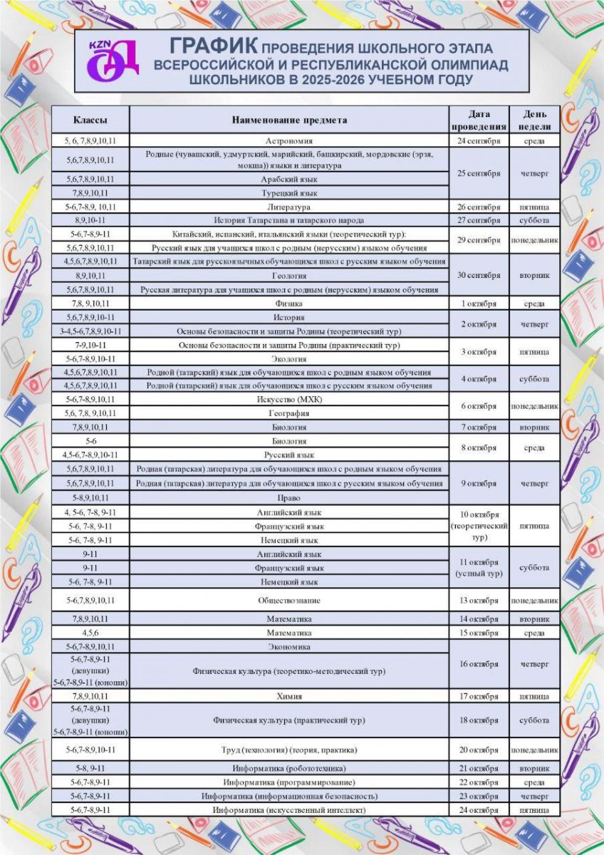 Приказ МО и Н РТ №1547/23 от 04.09.2023г. "О проведении школьного этапа всероссийской, республиканской олимпиад школьников в Республике Татарстан в 2023-2024 учебном году"