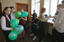 Цель акции: рассказать учащимся гимназии о вреде употребления алкоголя, табака и наркотических веществ. В завершении беседы активист повязывает зеленой ленточкой запястье собеседнику и дает ему шарик такого же цвета. Зеленый, а точнее, салатовый цвет в психологии указывает на то, что человек, который его предпочитает, способен рационально мыслить, четко выбирая правильный путь в жизни, у него богатый внутренний мир.