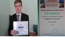 Ученика 8Б класса Никифорова Олега с успешным прохождением программы физико-математического факультета Малого университета КФУ. Также с награждением грамотой за отличные результаты в Международной интернет-олимпиаде школьников по физике при С.- Петербургском Государственном Университете. Молодец! Учитель: Абрамова Н.Ю.