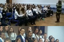 23 ноября в школе №36 прошла встреча активов ШУС Авиастроительного и Ново-Савиновского районов с врачом Республиканского СПИД центра Мухаметовой Р.Н. Учащиеся нашей гимназии Вавилова Полина и Пономарева Вера приняли активное участие в этой встрече.