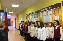 Началась новая учебная неделя. Право вынести и установить флаг Российской Федерации и флаг Республики Татарстан предоставилось учащимся 6Б класса. Также ребята исполнили гимны.
